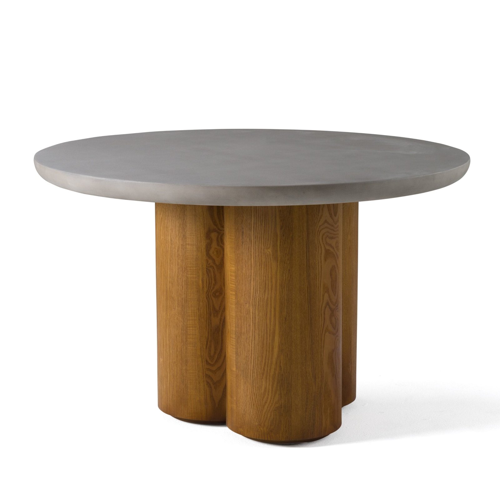 Modrest Duncan – Modern Faux Concrete + Walnut Round Dining Table