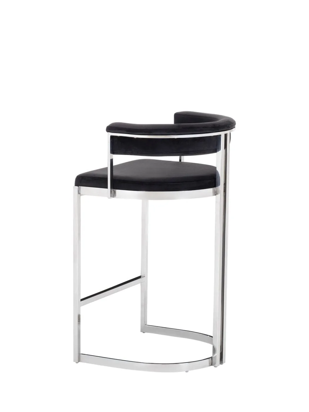 The Modern Buchtel Counter Chair combine excellent quality materials and superb design that makes it a stunner in your dining room. The light grey fabric upholstery back & seat cushion and black & gold metal arms and legs bring style and elegance to a dining experience. The Buchtel also comes in a dining height chair.