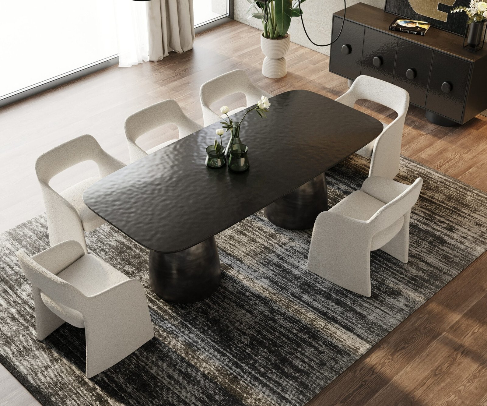 Dine in style with the Modrest Calexico Rectangular Dining Table! This modern table features a Black Wave Glass Top and Brushed Black Aluminum Double Pedestal Base that offer a stylish addition to your dining room. Able to seat up to 8 people, the Calexico combines excellent quality materials and superb design that makes it a stunner in any dining space. The Calexico collection also includes a Round Dining Table that seats up to 4.