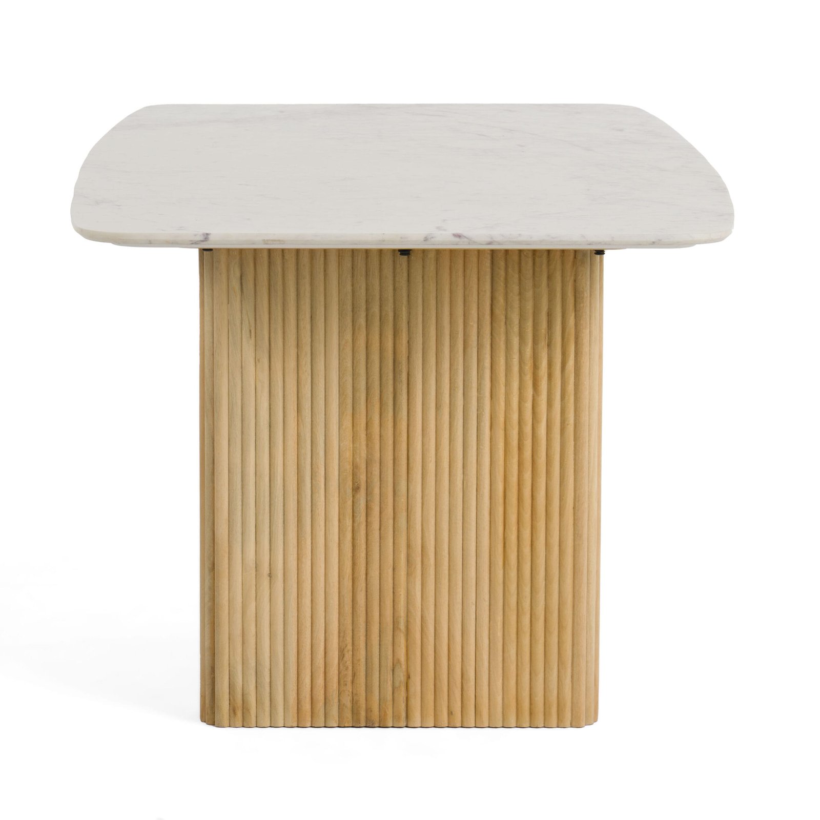 The Modrest Cambridge Rectangular Dining Table adds a clean and dynamic vibe to your dining room with its washed mango wood double pedestal base and visually appealing white marble top. This stunning table seats 6 comfortably and pairs with its matching buffets for a comprehensive dining area. Combine this dining table with other items from the same Cambridge collection.