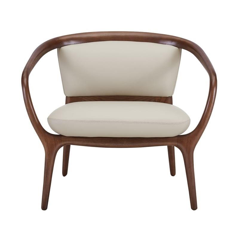 The curvilinear lines and tapered legs of the Deana Accent Chair make it the perfect mid-century style piece. Deep walnut wood across the frame and soft beige vegan leather upholstery create an engulfing experience, bringing you back in time and up to date fashion. Perfect for a contemporary or modern room for a touch of drama.