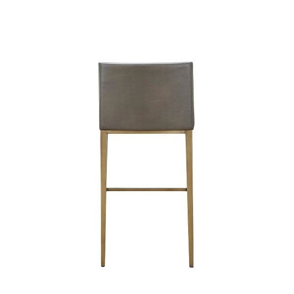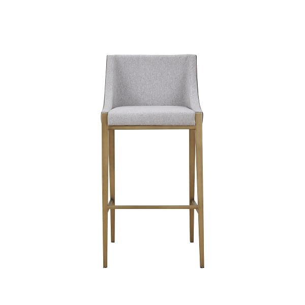 Solidly built and comfortable Contemporary Fairview Bar Stool is made from Antique Brass finished stainless steel and soft Grey Fabric.
