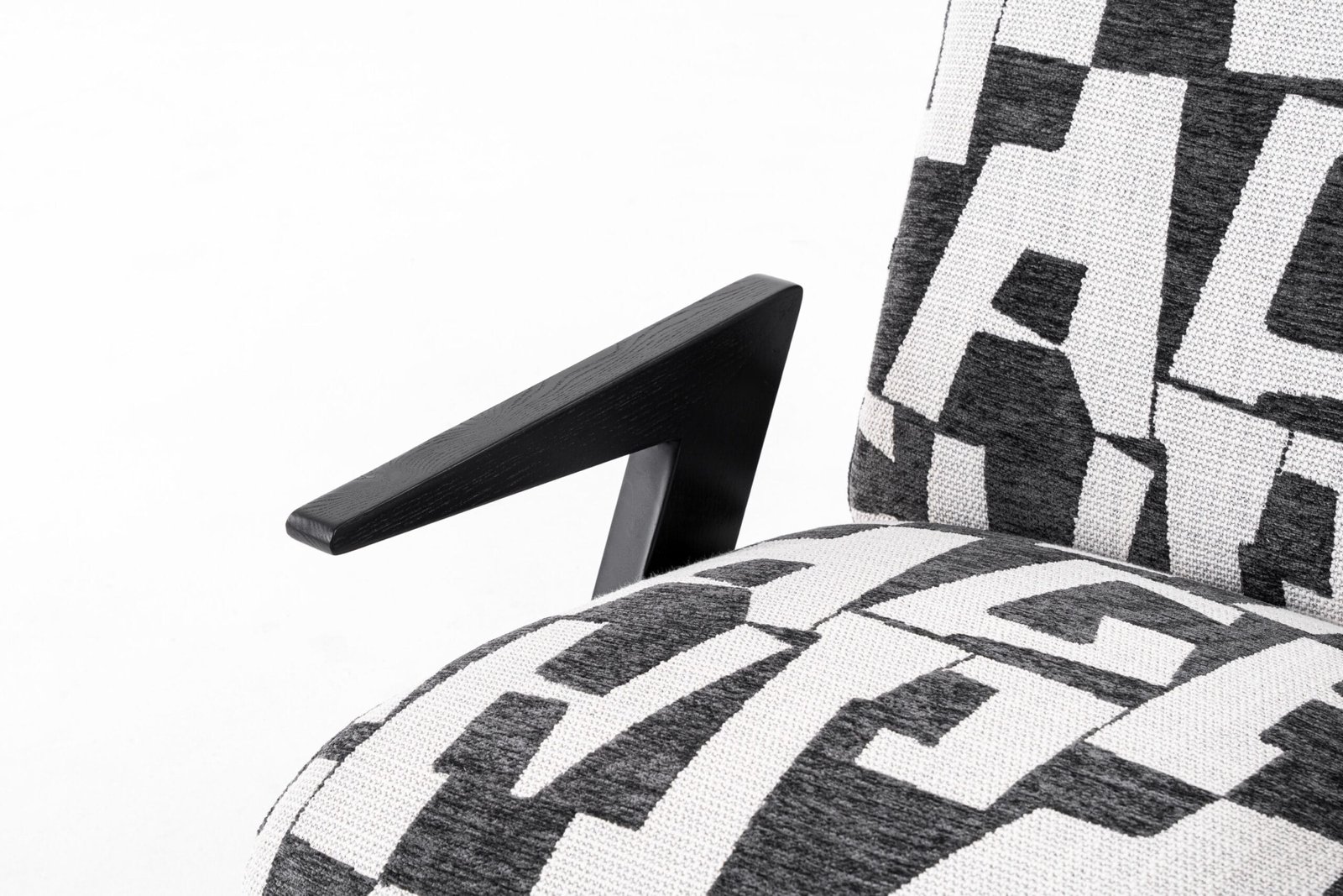 The Modrest Leana Modern Black & White Fabric Accent Chair is a stunning addition to contemporary spaces. Upholstered in a durable polyester blend fabric with a striking black and white geometric pattern, this chair offers both style and comfort. Its foam-filled seat and back, solid ash and manufactured wood frame, square arms with wood accents, and tight back design make it a standout piece. Plus, the convenience of no assembly required ensures you can enjoy it right away!