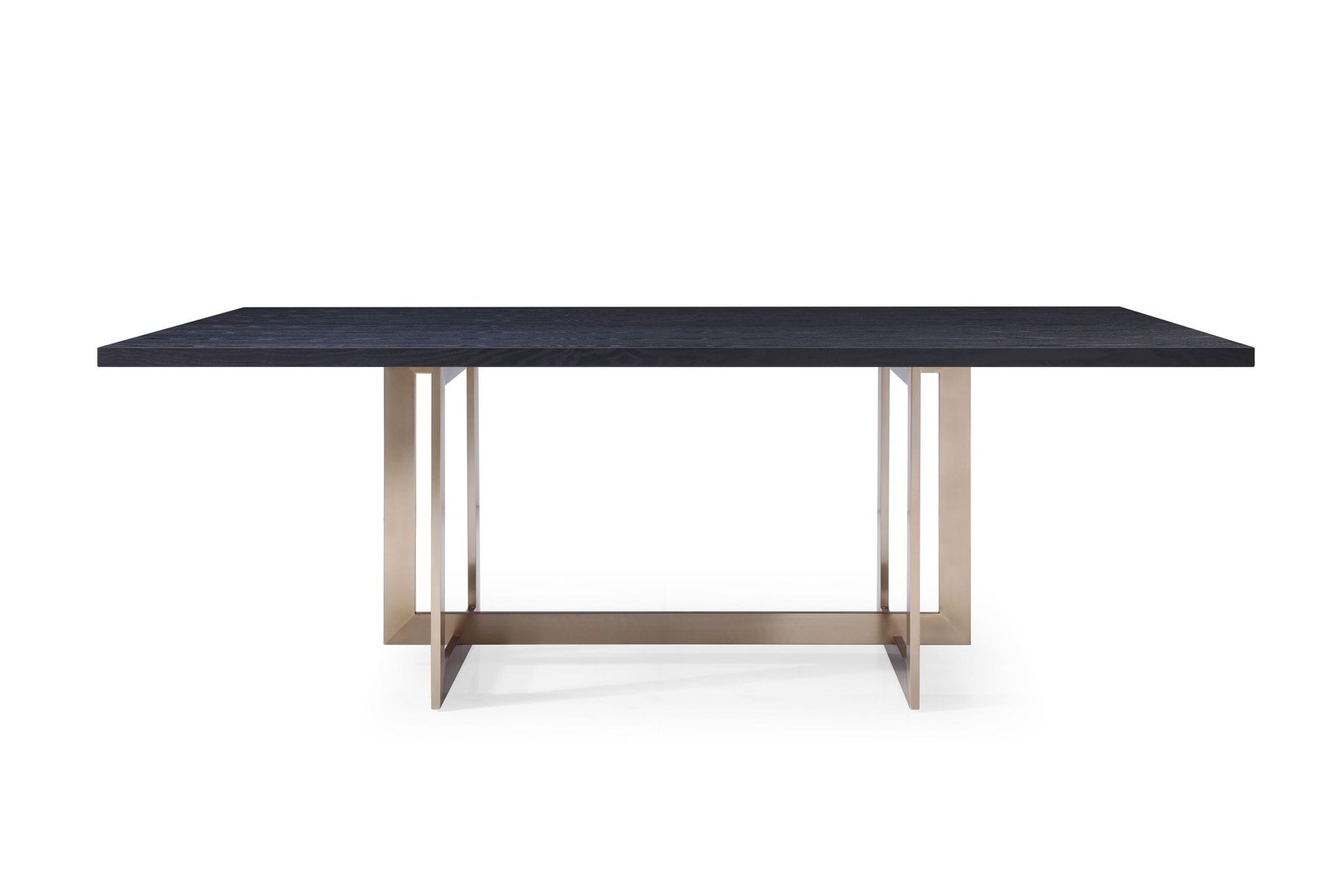The Pike Dining Table has everything you need. The angular brass stainless-steel base sits perfectly centralized in the space of power. The textured black ash veneer top contrasts the smooth metal base perfectly to create a harmony in the table and in the space. Pair it with velvet chairs in a color pop to finish the look.
