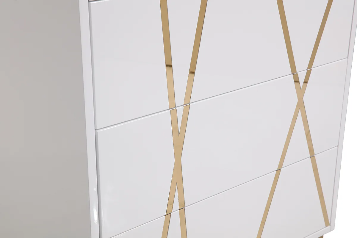 The Modrest Voco Modern Grey Chest features an unsullied grey high gloss finish with 2 large-sized drawers and 3 medium-sized drawers adequate enough to store your items. It stands on sleek stainless steel legs that also adorn the front of the drawers. Measuring W23″ x D18″ x H47″, this modern grey chest requires assembly.