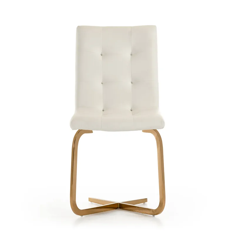 This modern inspired dining chair features long tapered legs and brown leatherette upholstery on the seat and backrest. Brown oak wood veneer coats the frame and matches the Union Dining Table, Buffet and Wine Cabinet which are sold separately.